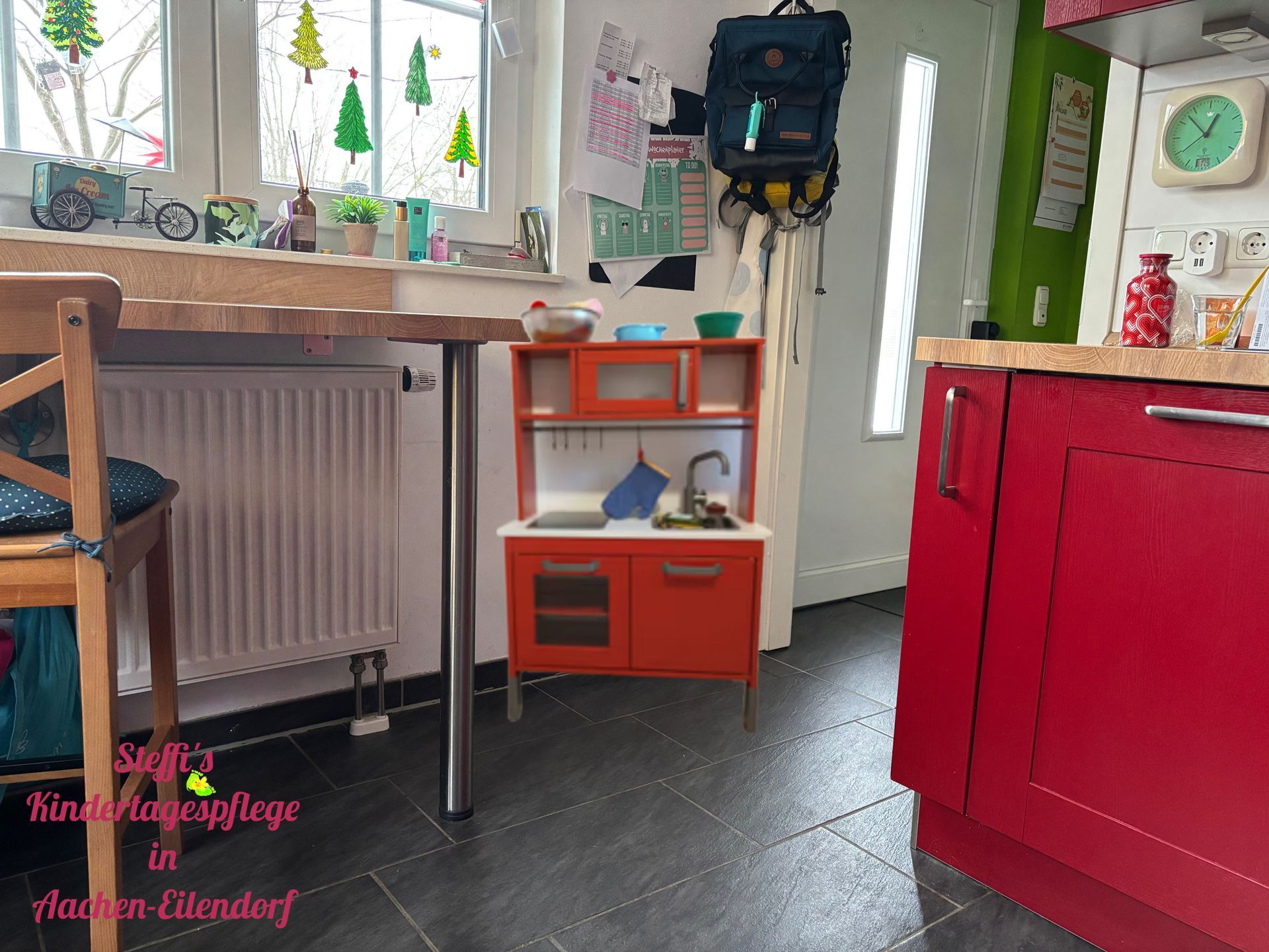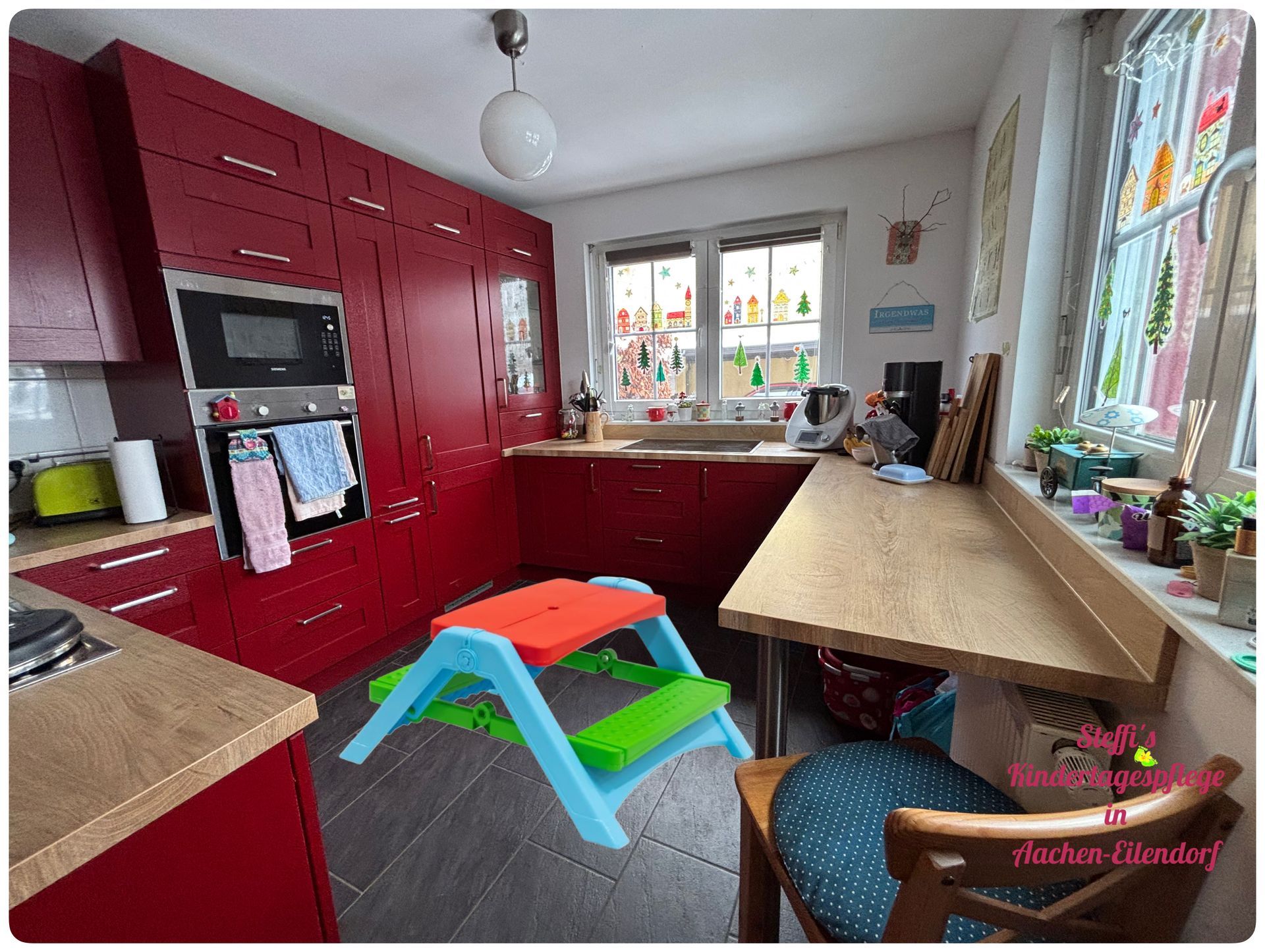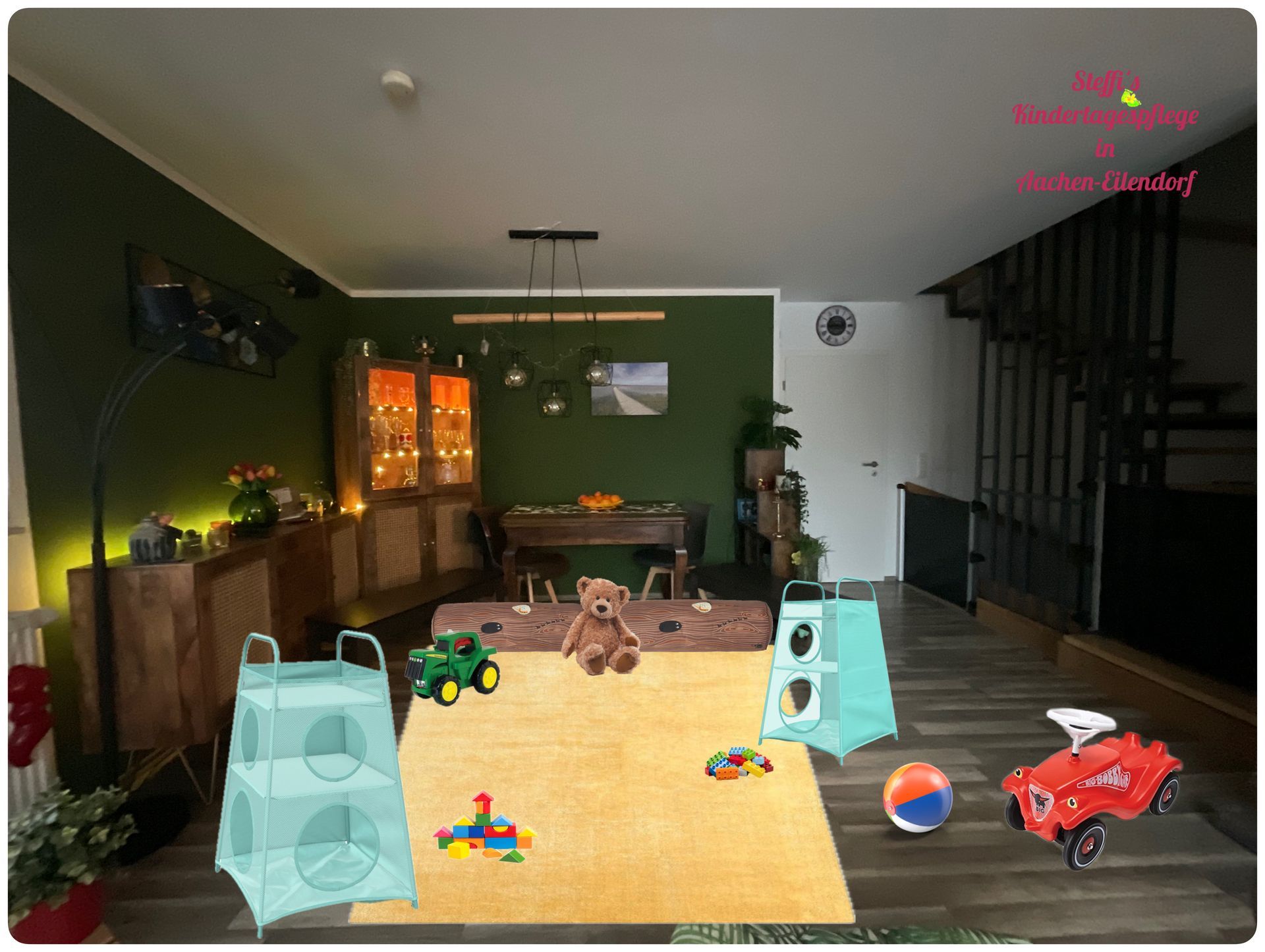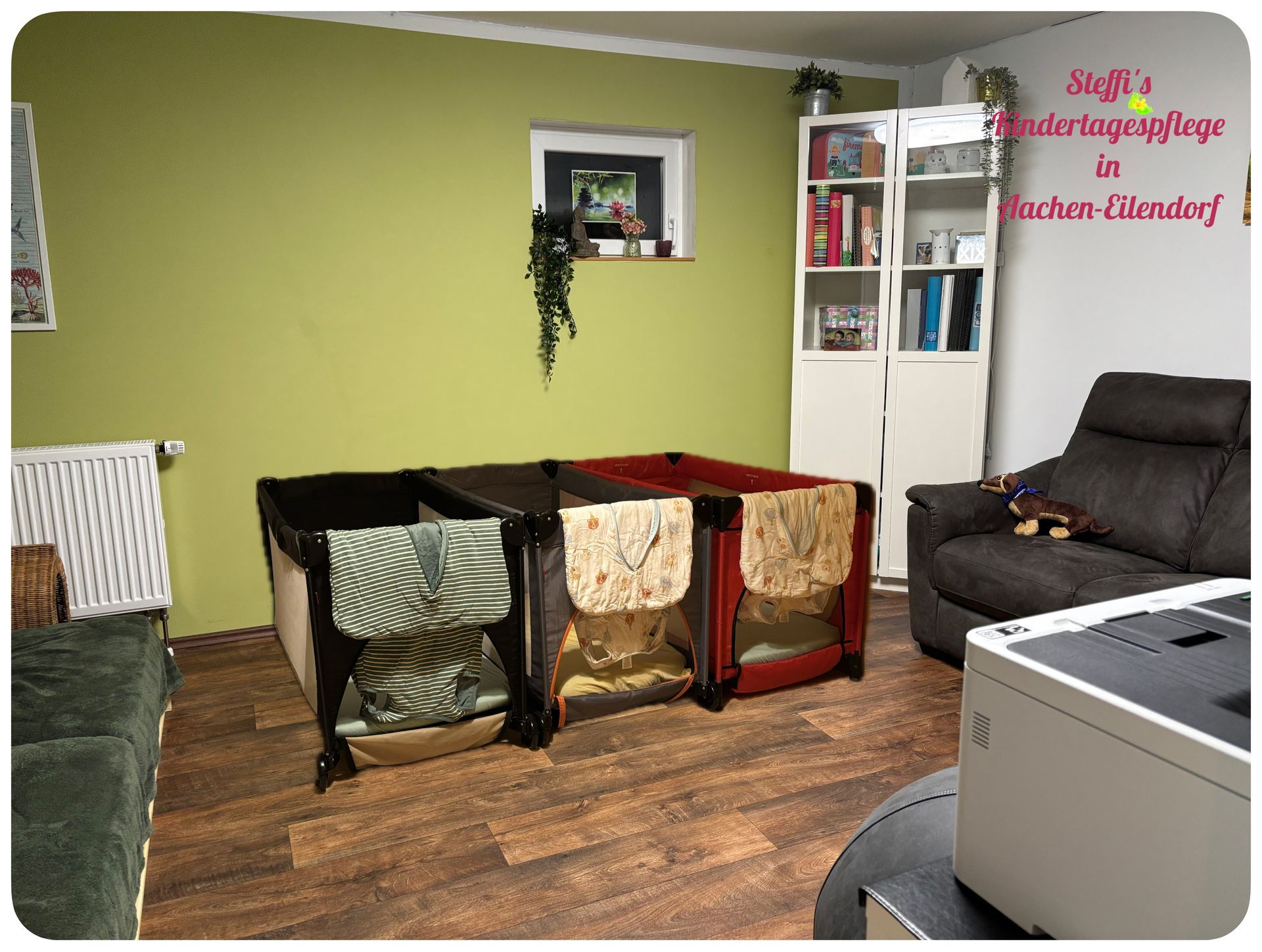 Ab Februar 2026 werde ich wieder bei mir zu Hause im Maarwinkel betreuen. Zur Betreuung nutze ich meine Küche, das Gästebad, den Flur und ein Teil des Wohnzimmers, zum schlafen nutze ich mein Gästezimmer. Die Bilder zeigen wie es ungefähr aussehen wird, sind aber nur bearbeitet und nicht real.